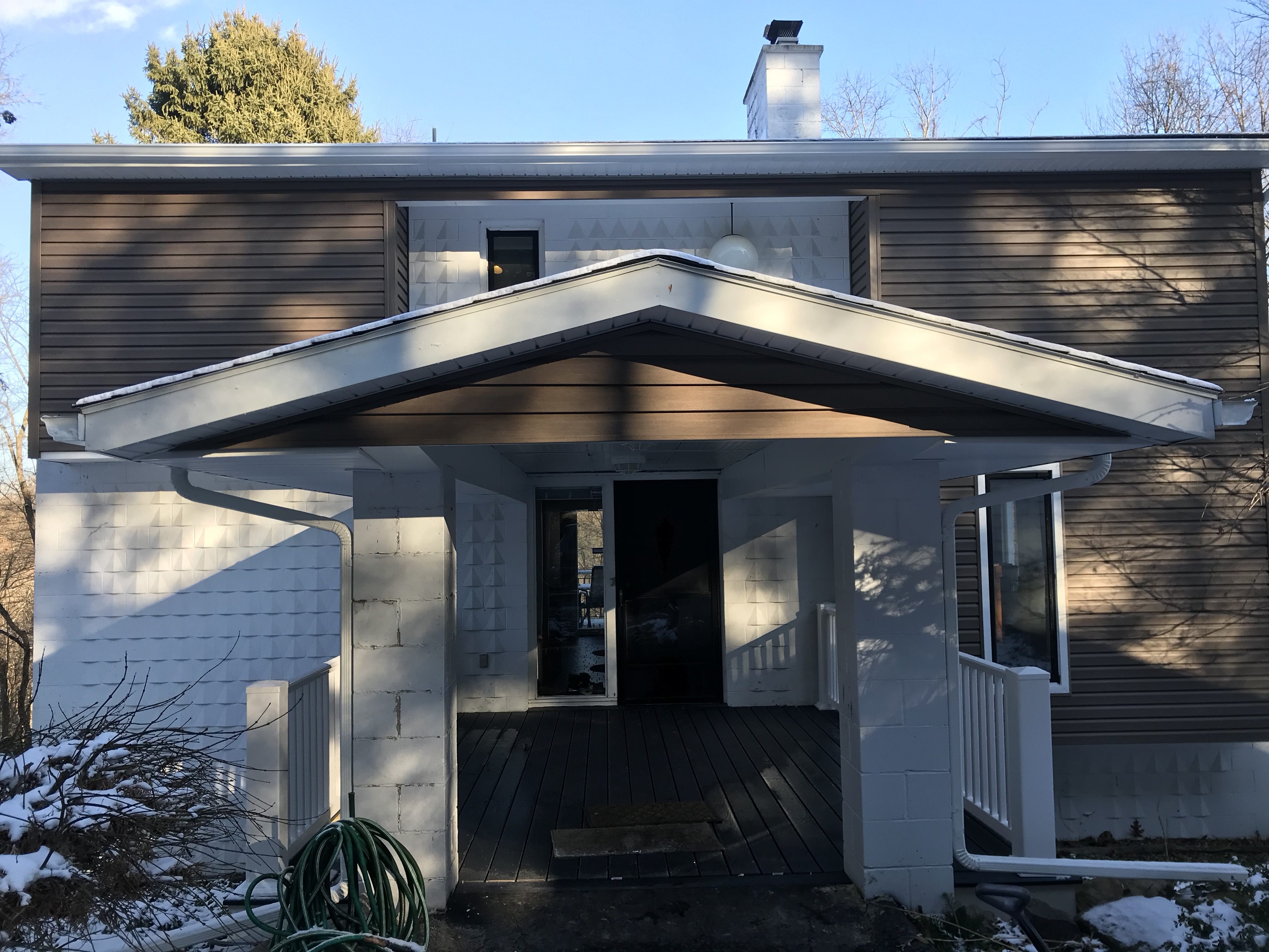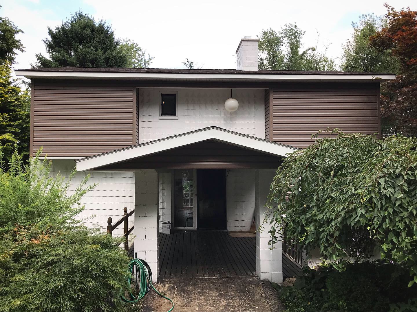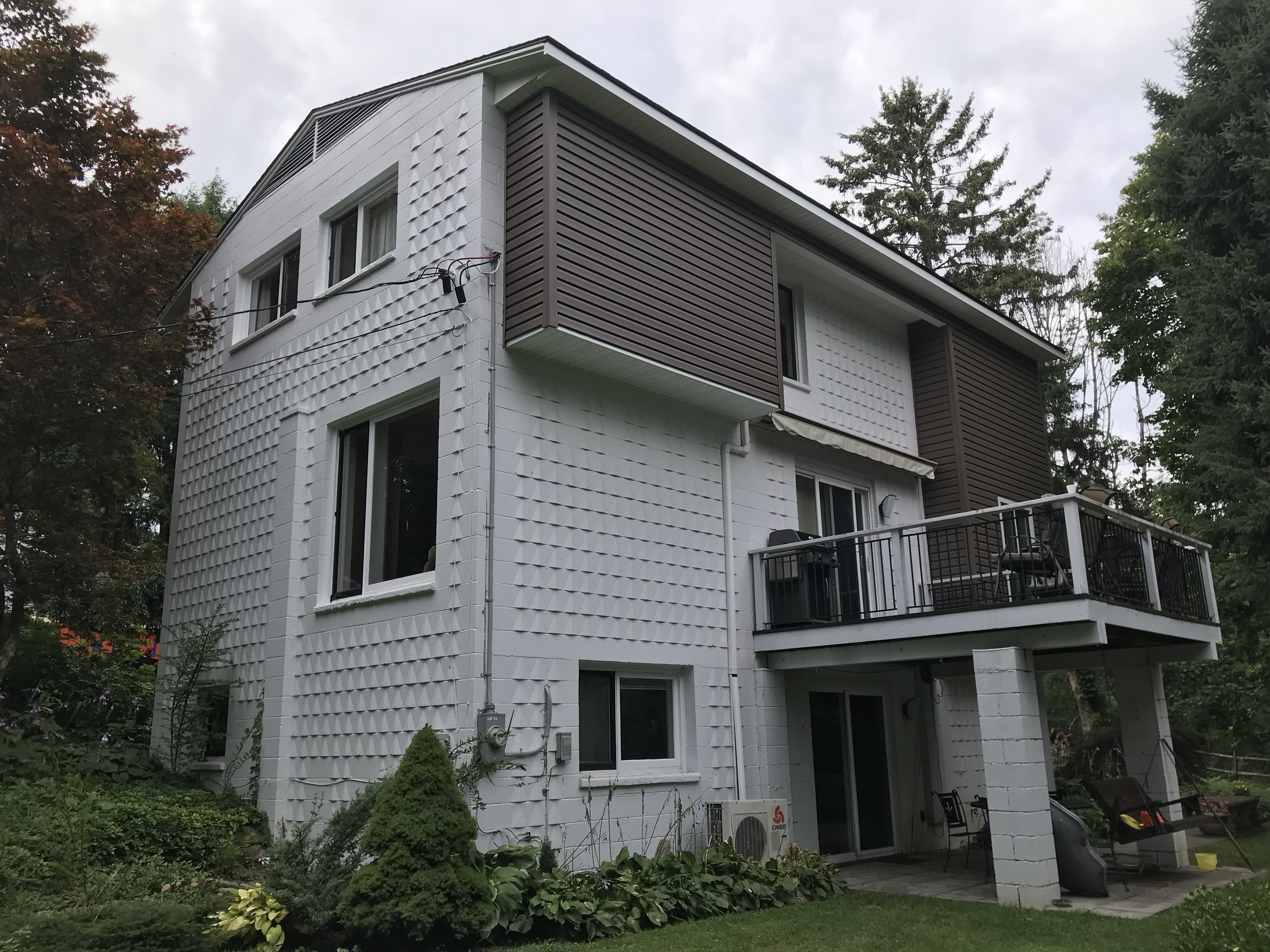 The transformation from the old cedar shake siding to the new brown vinyl was really cool. Plus, it looks nice against the cement siding of the rest of the house.