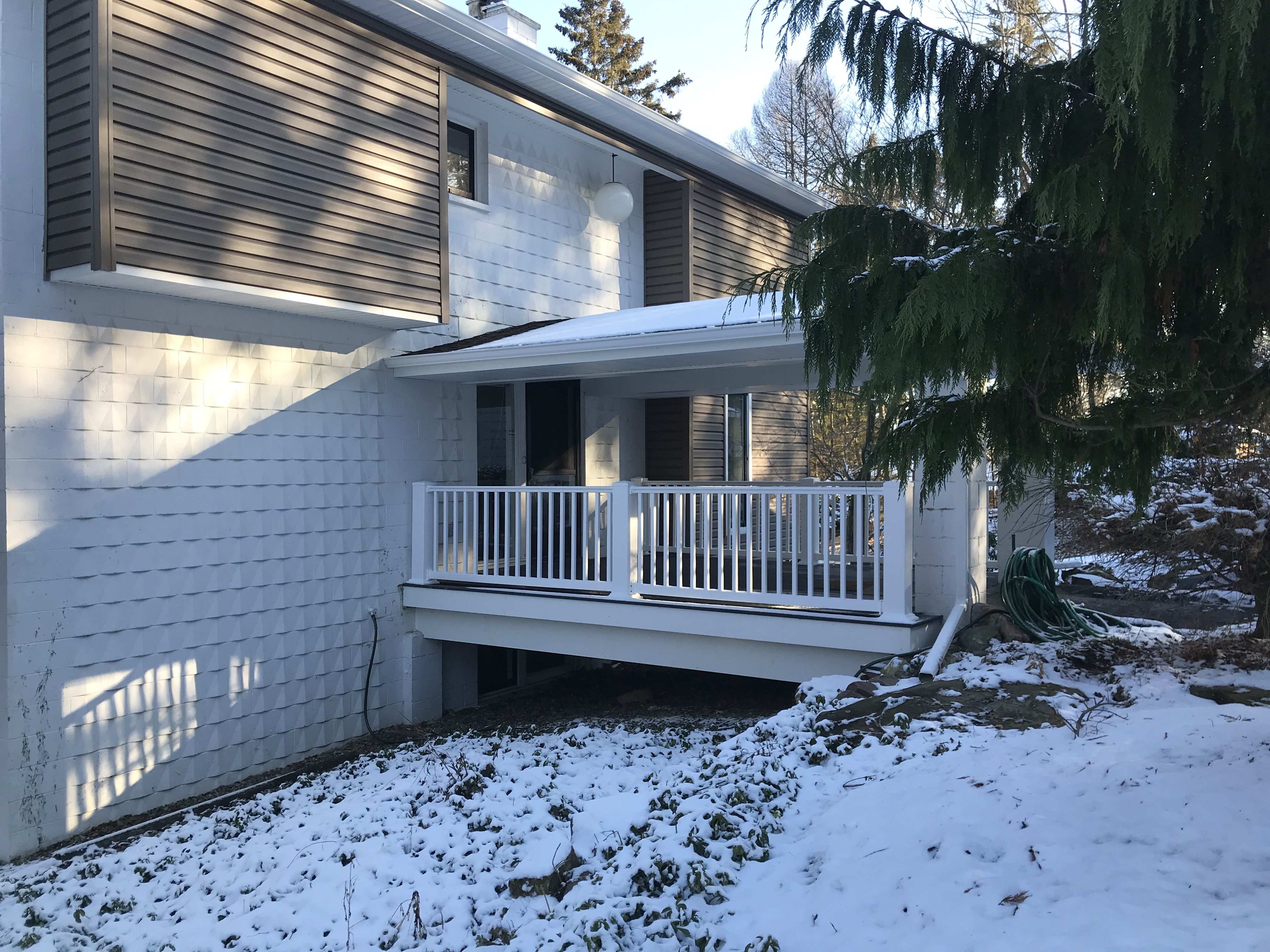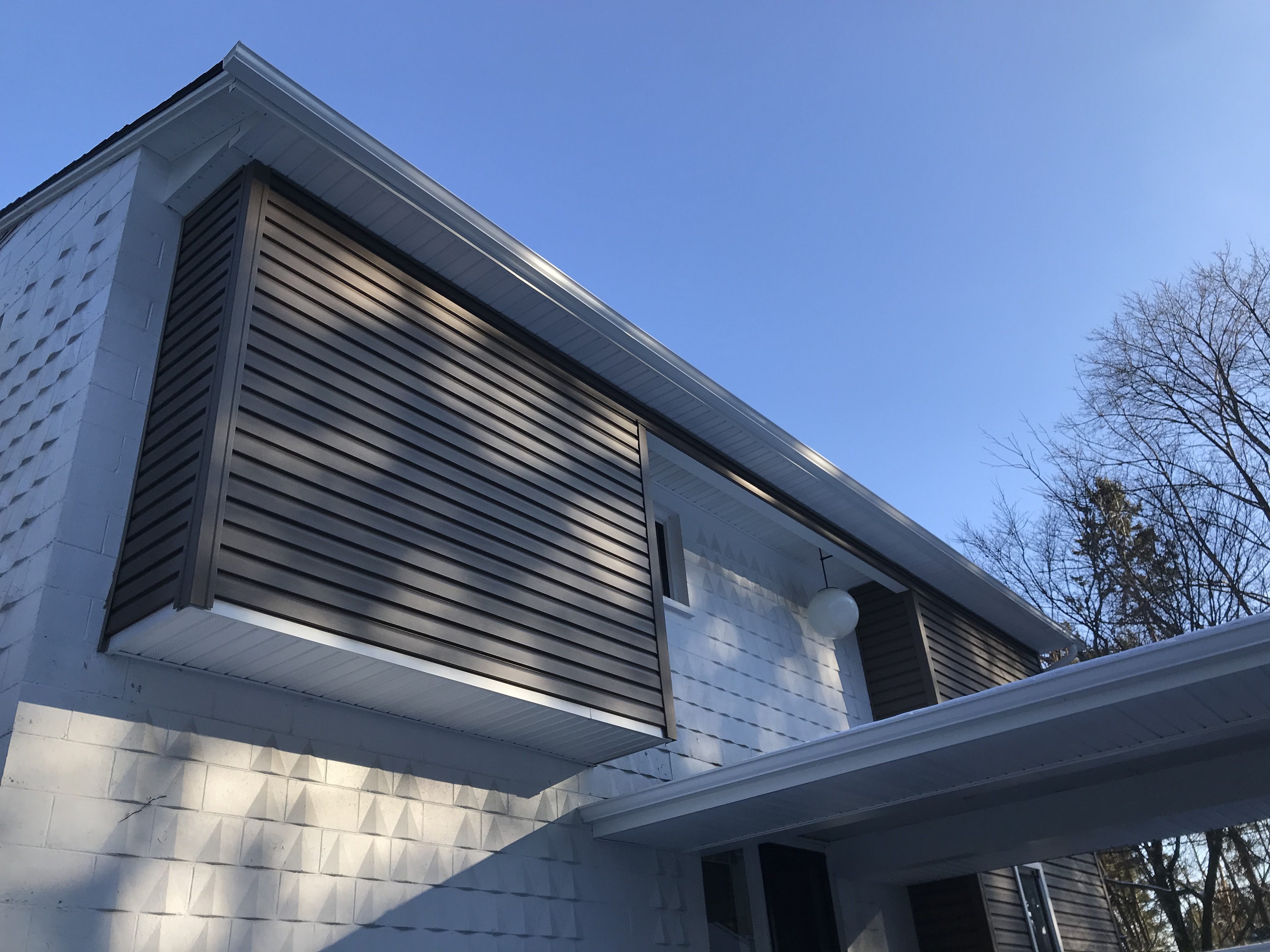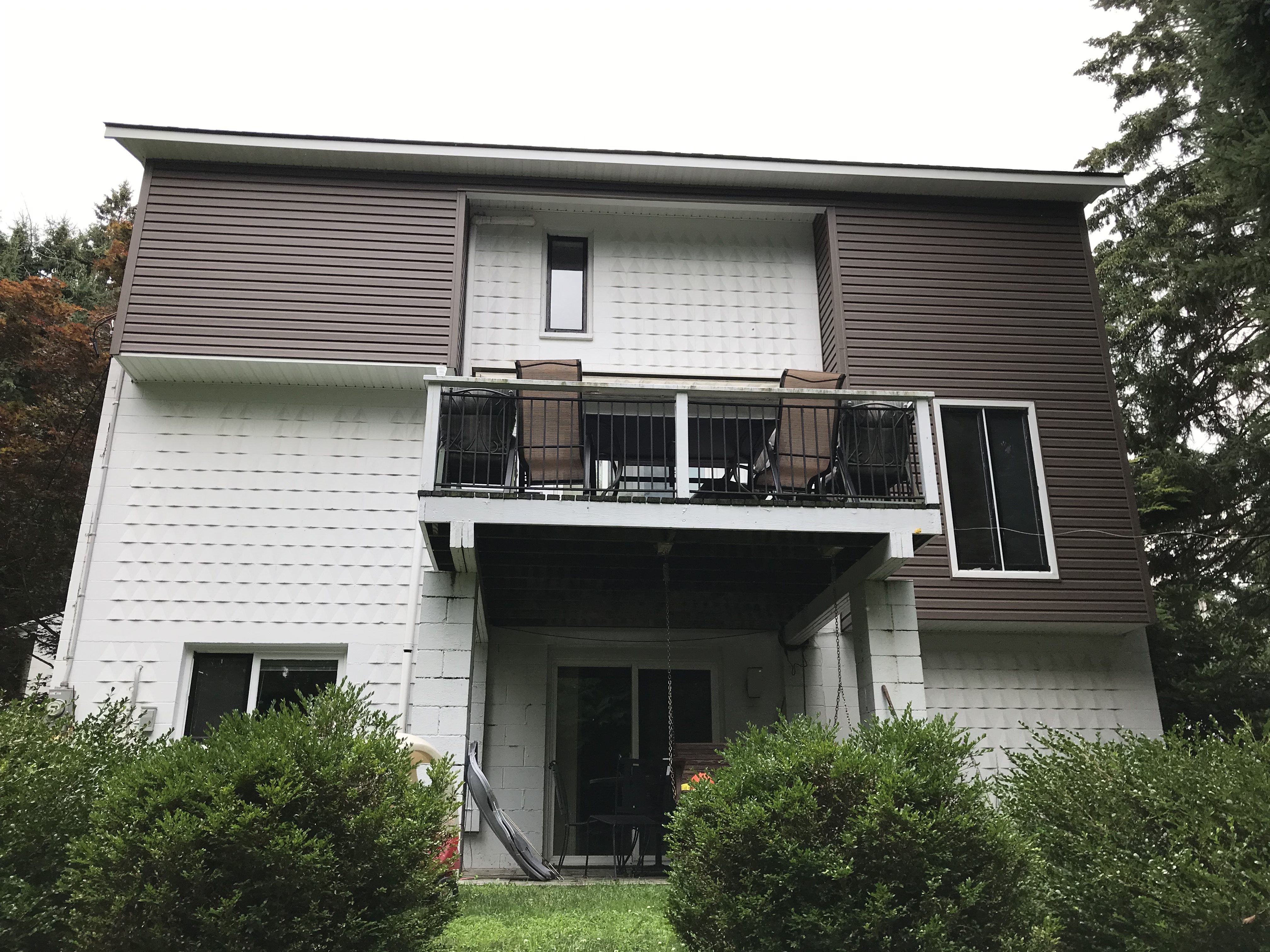 The transformation from the old cedar shake siding to the new brown vinyl was really cool. Plus, it looks nice against the cement siding of the rest of the house.