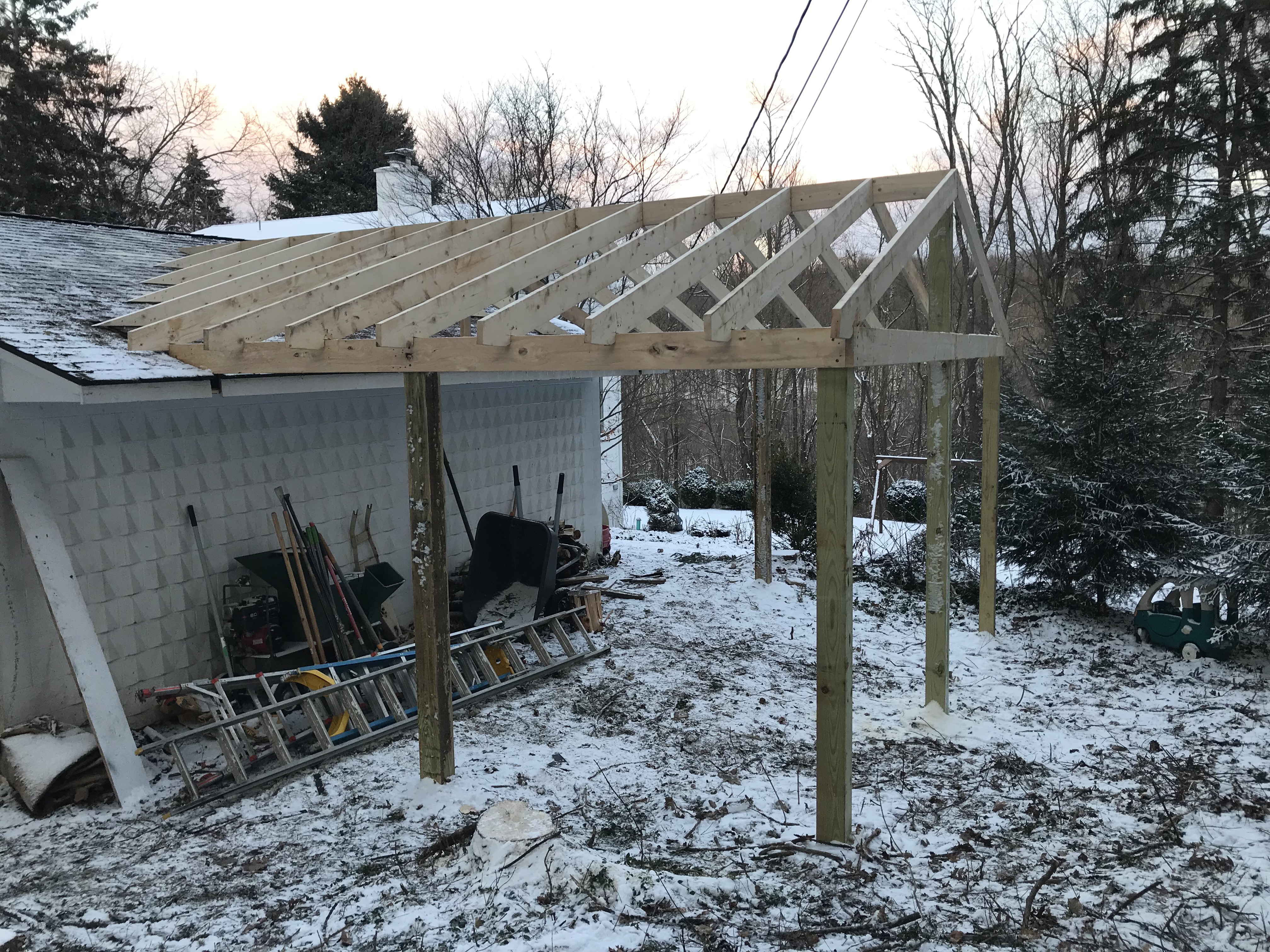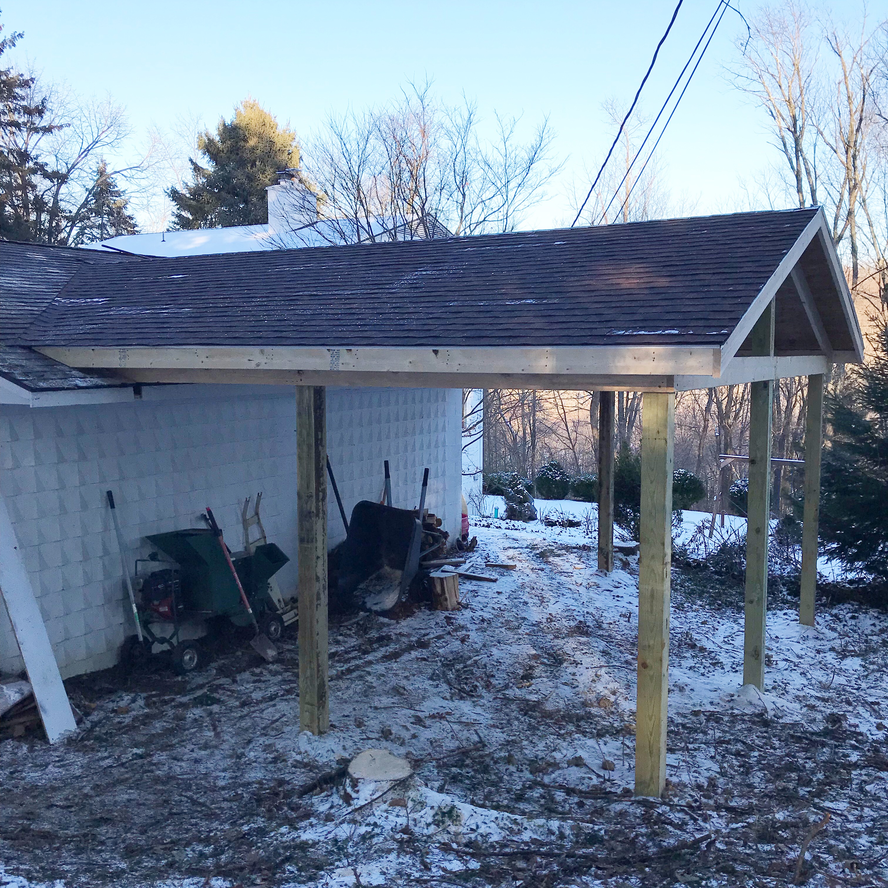While we’re on the subject of things we hired people to build — let’s also talk about the lean-to built on the back of our garage. We had this built for several reasons: