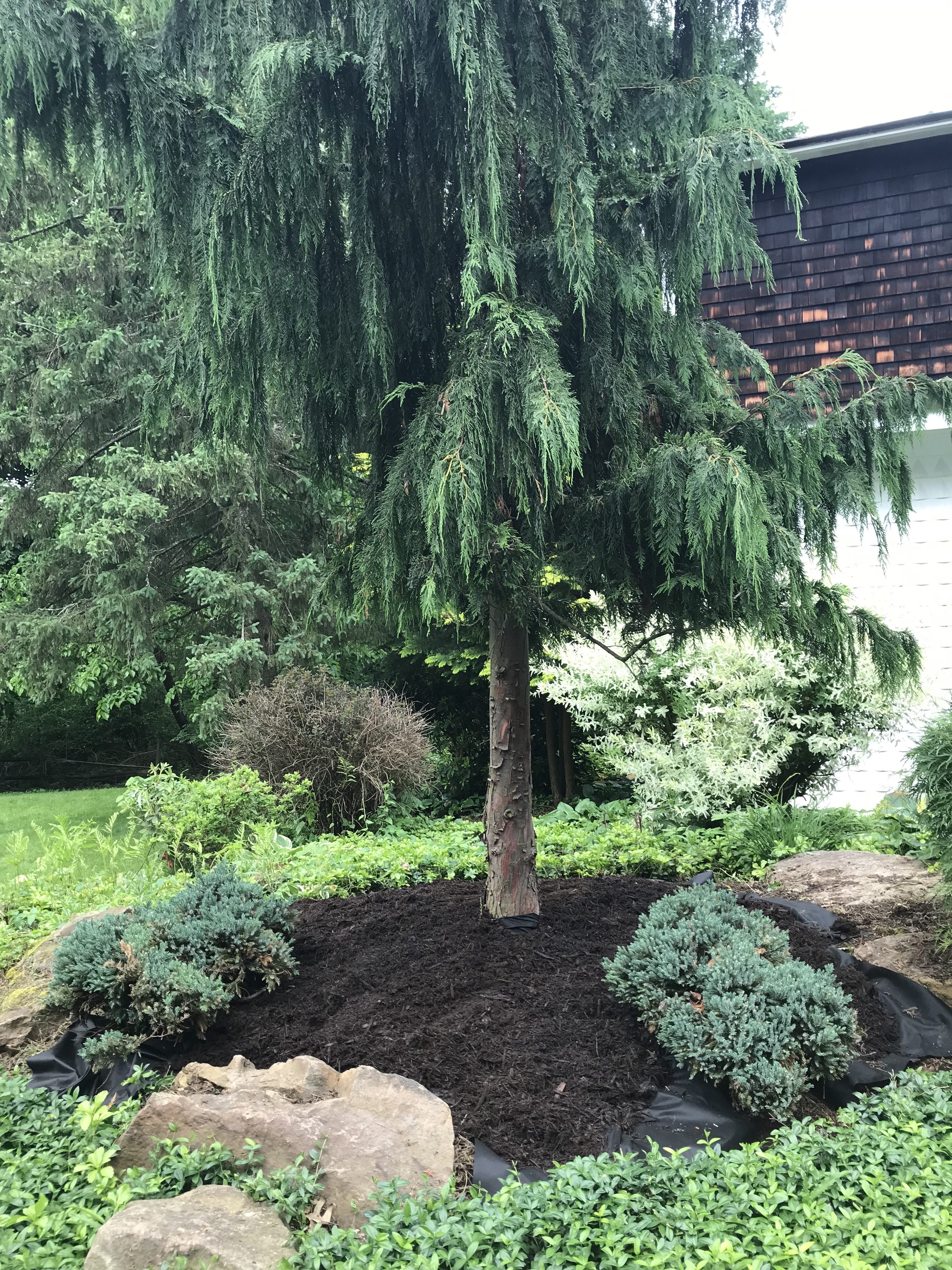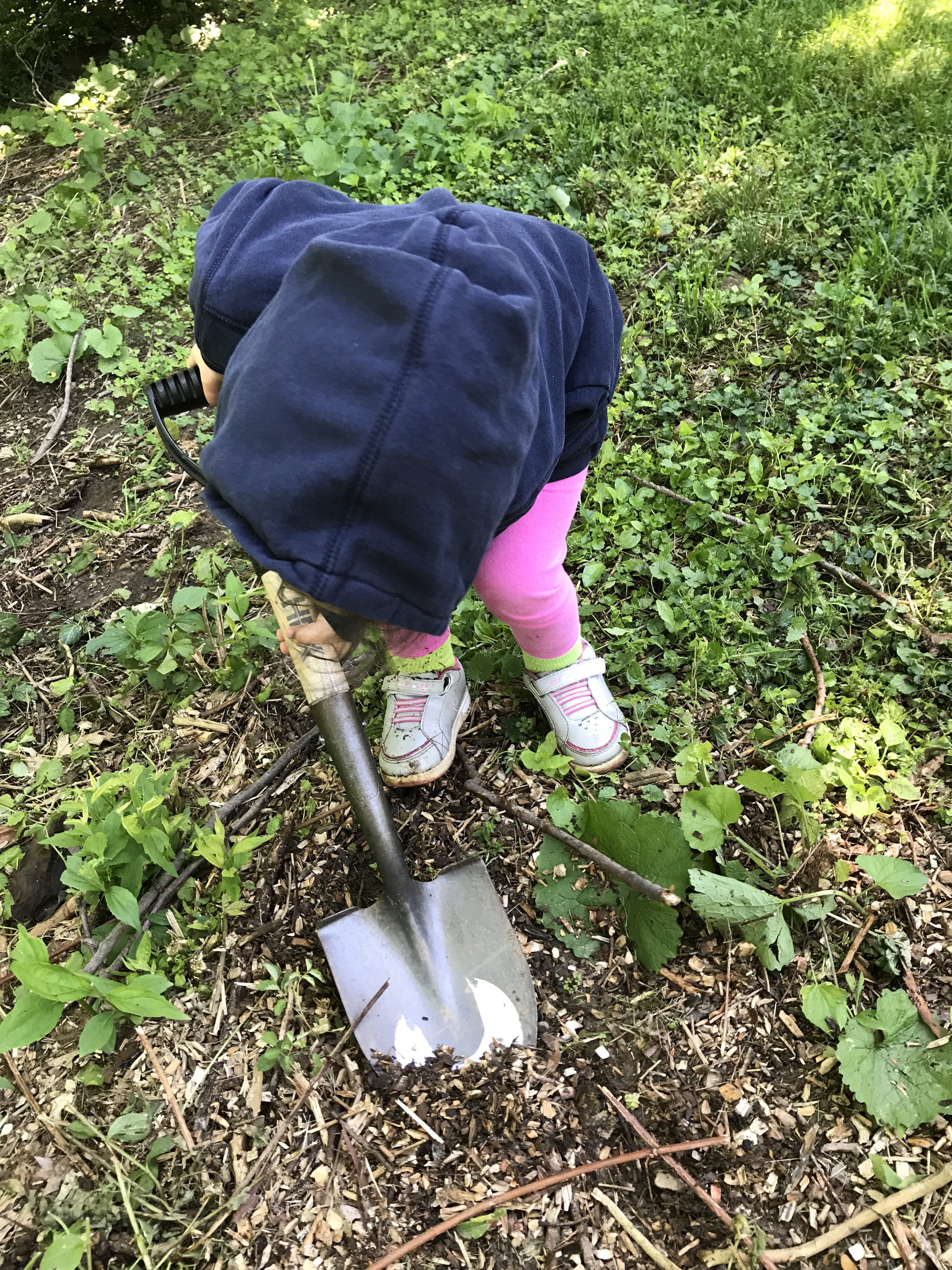 There’s a patch of ground behind our garage that is wooded. The trees are nice for privacy, but they’re tall pines and many of them are dying. I unaffectionately call this area of ground the graveyard. My dream is for this patch of ground to become a useable part of our yard. I want to encourage strong healthy trees to grow, but also clear out the dead and dying pine trees so there’s a place to play our maybe even have a picnic someday. This area was also very overgrown and when we first moved in you could barely see through it let alone walk through it.