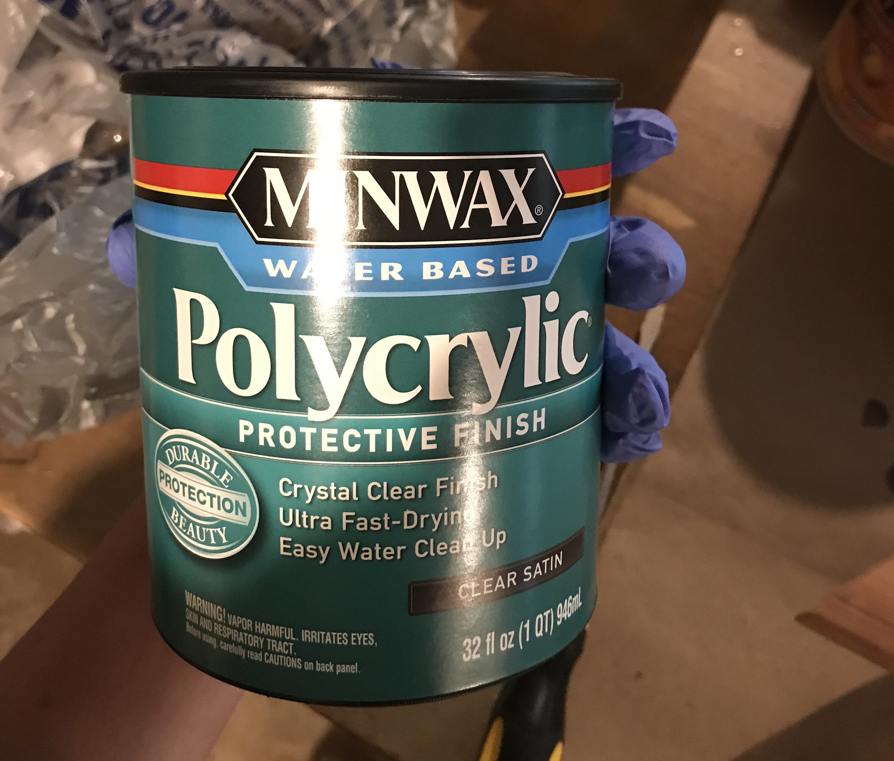 I applied two coats of Polycrilic, and I lightly sanded in between coats.