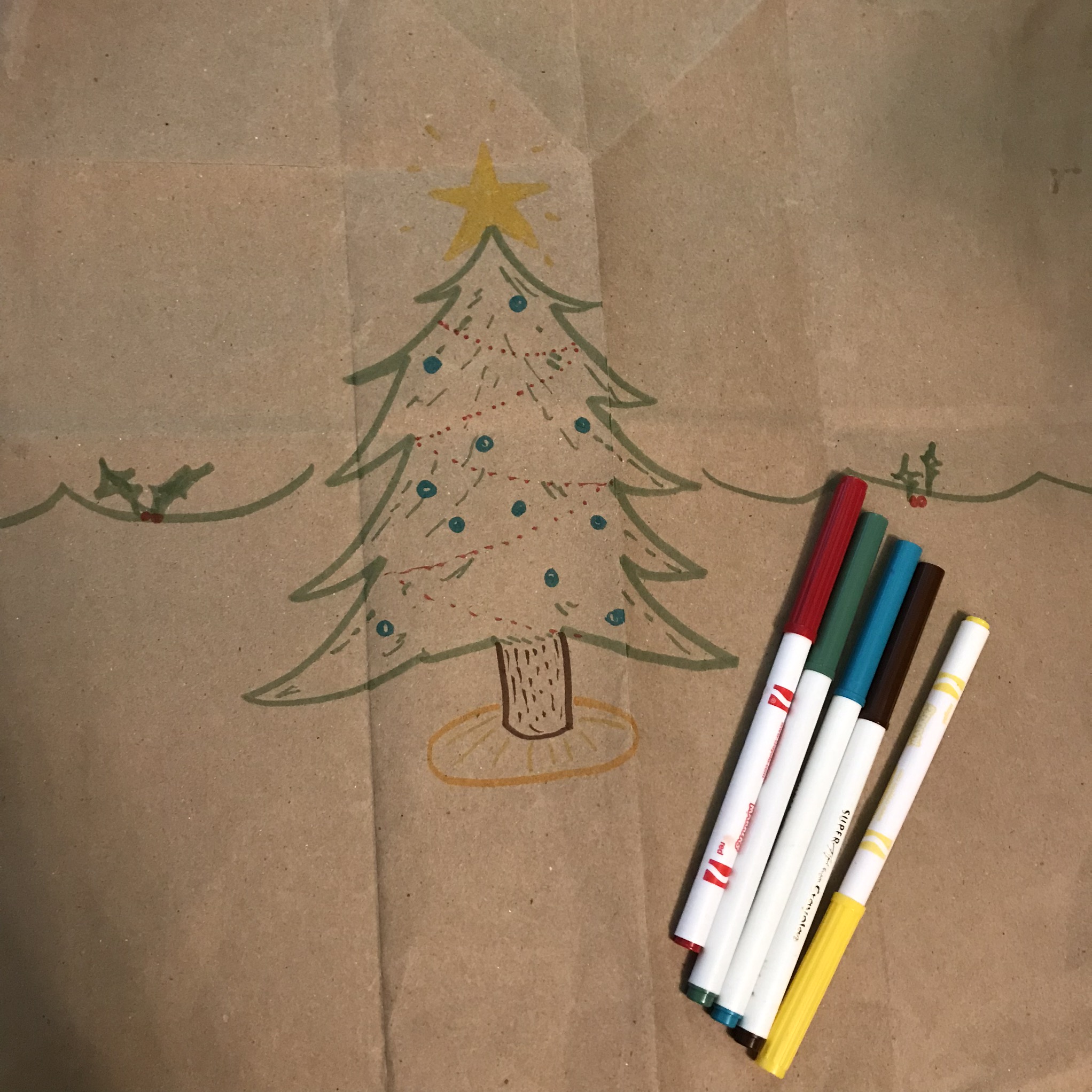 What’s neat about this is the kids got to express their creativity in any way they chose, and we used something that would easily have been thrown out. When they were done drawing, they all had a good time wrapping presents with their personalized wrapping paper.
