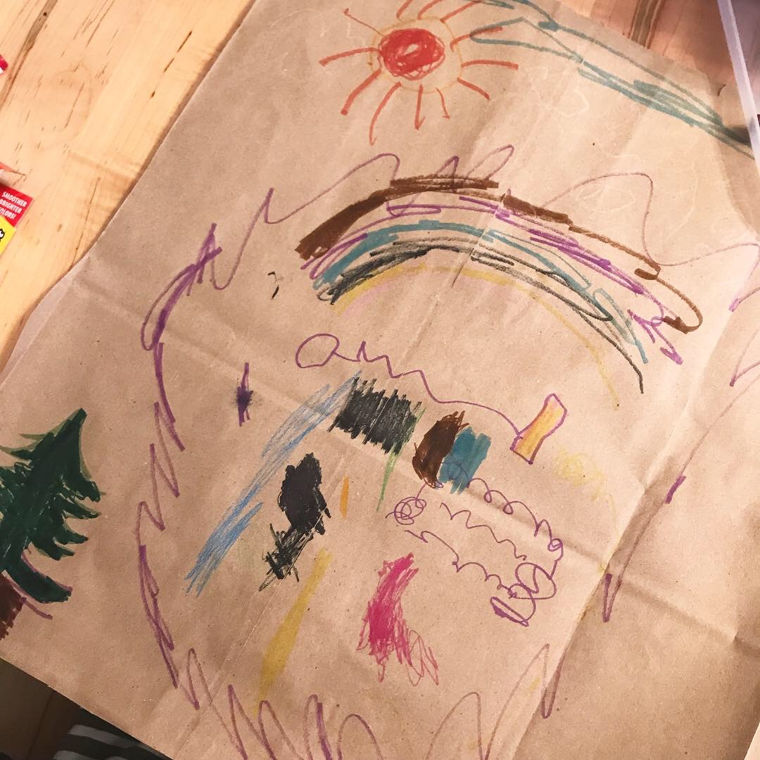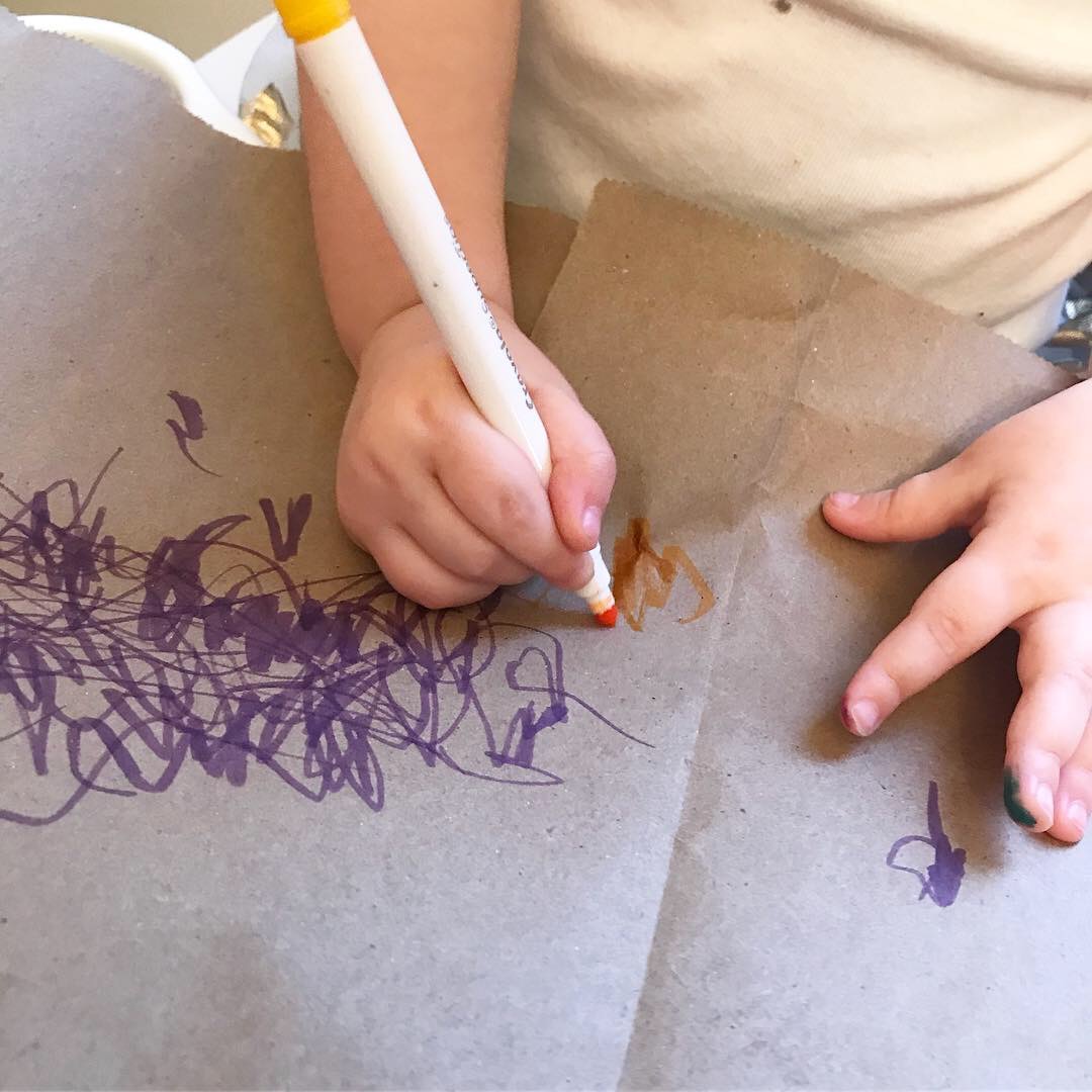 Bonus: Paper bags are great for putting under messy craft projects. We’ve done painting projects and used our paper bags to protect our table and other surfaces. A win-win for crafting time.